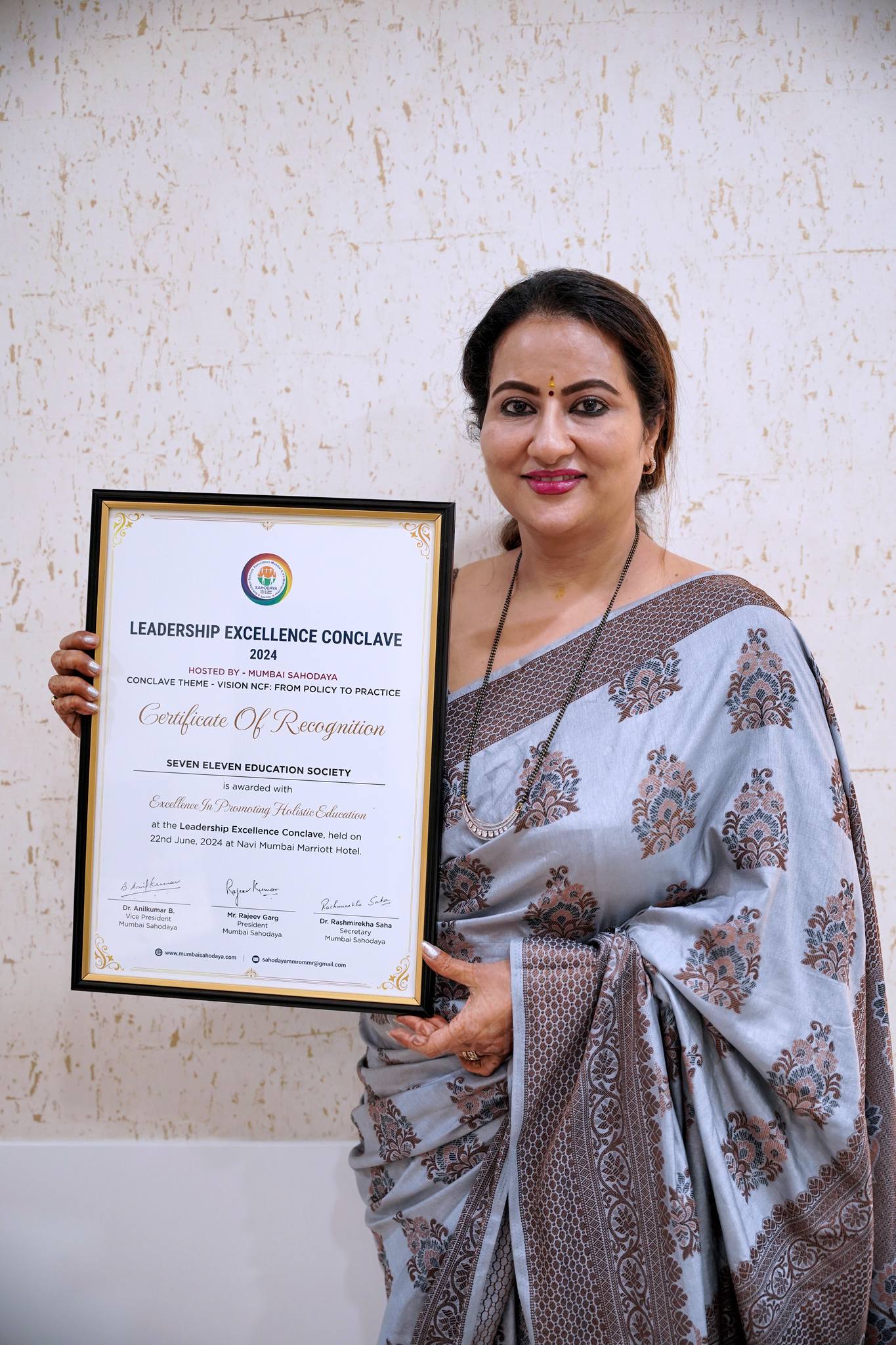 Seven Eleven Education Society extends sincere appreciation to receive the Certificate of Recognition for promoting Holistic Education at the Leadership Excellence, Conclave, held on 22nd June, 2024 at Navi Mumbai, Marriott Hotel.